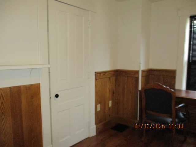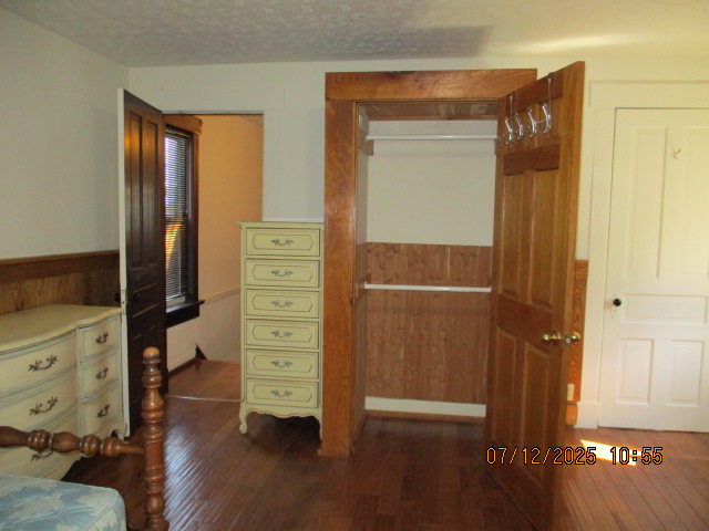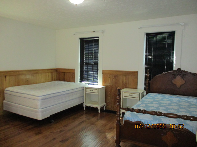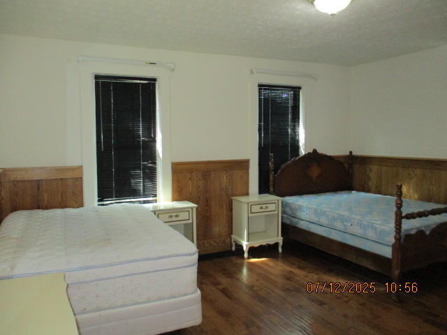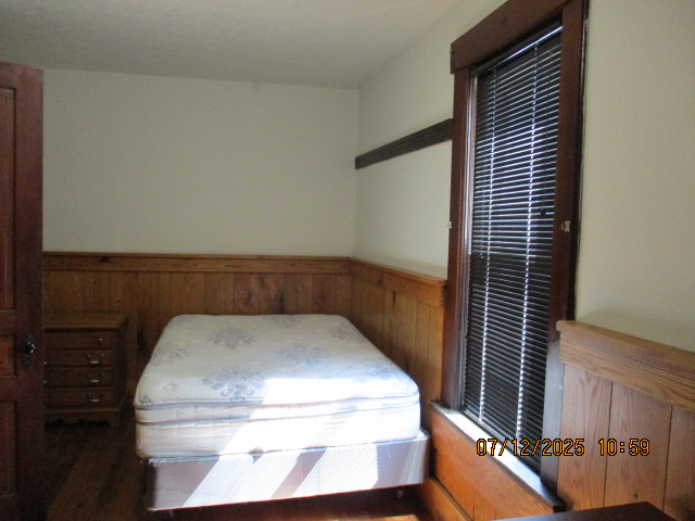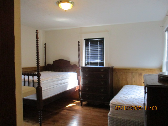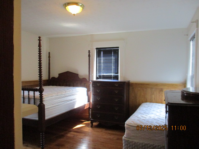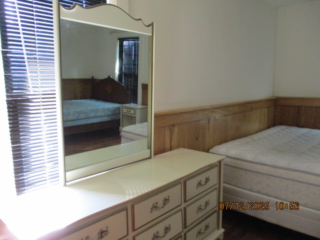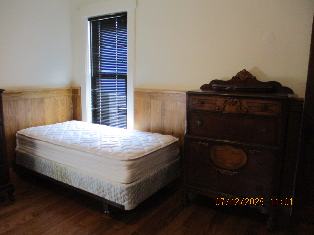 currently with full bed, and twin bed, oak wainscoting, Desk, Dressers, Closet