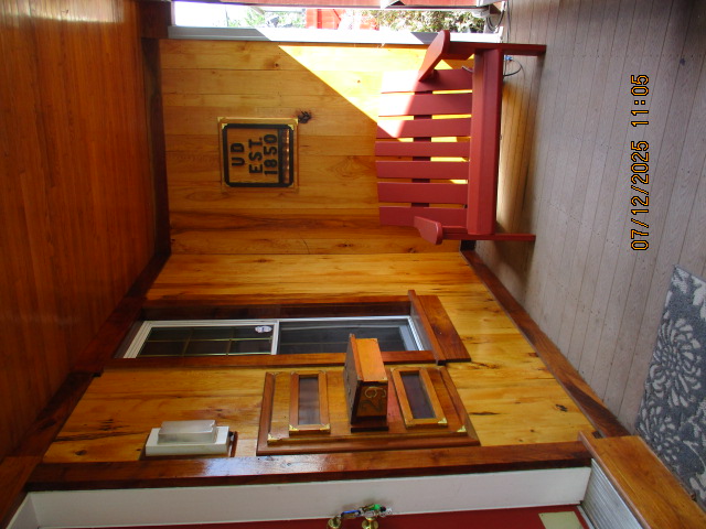 porch with oak ceilingand oak walls with black walnut trim, custom
