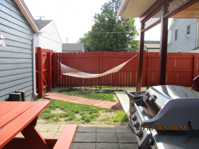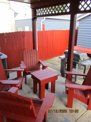 grill, custom built picnic table, hammock, and patio set. Custom built