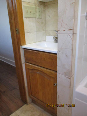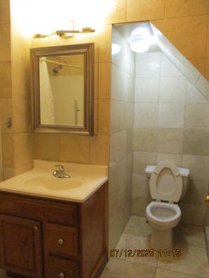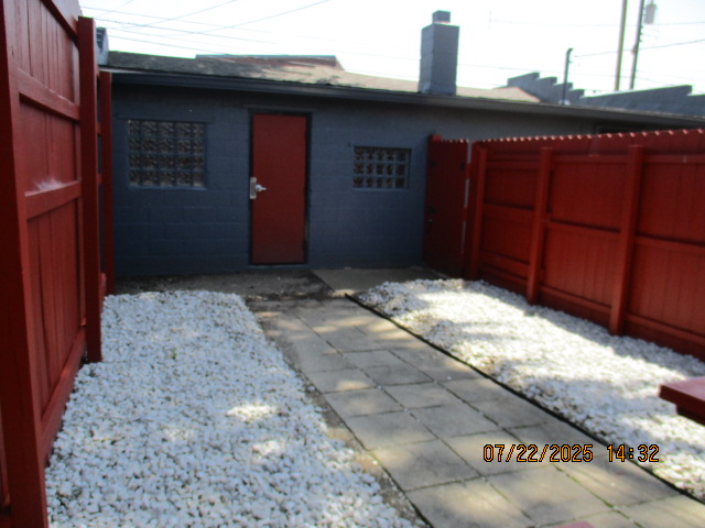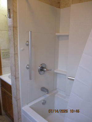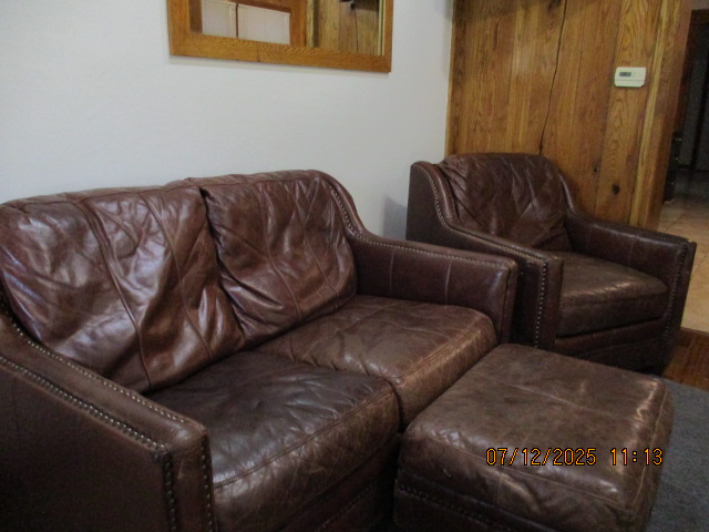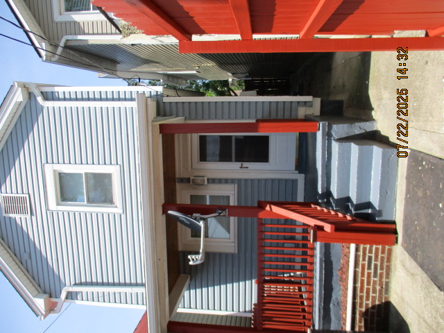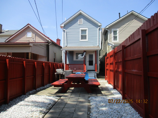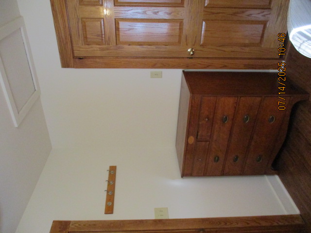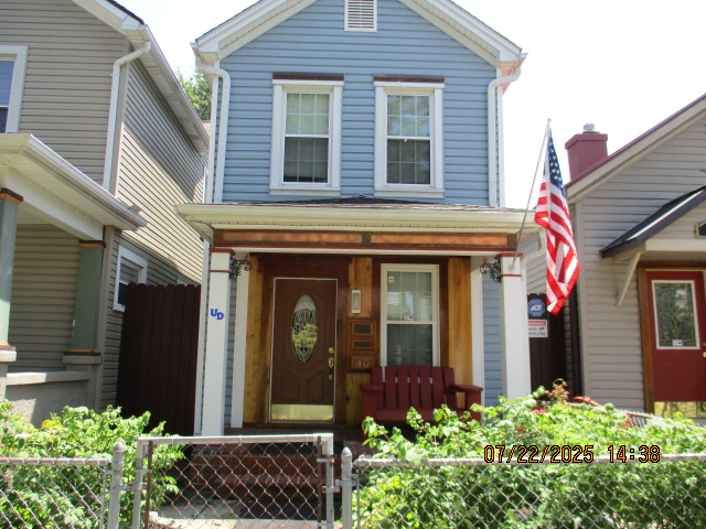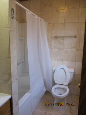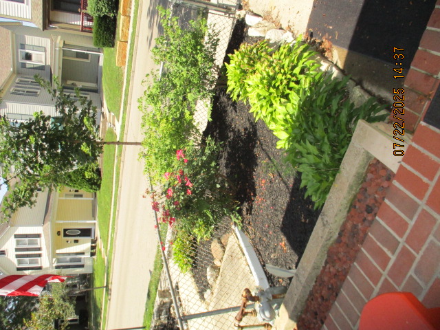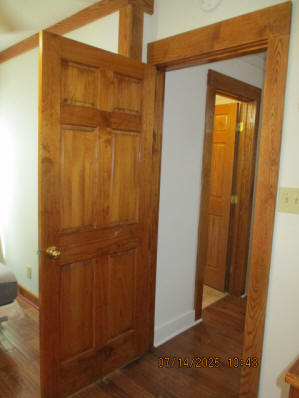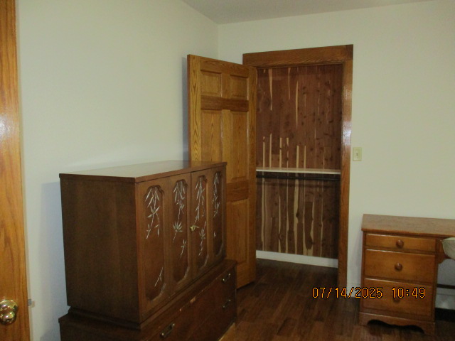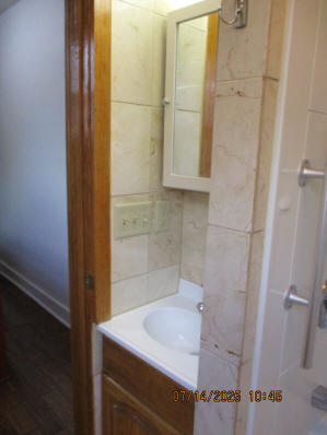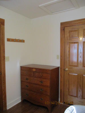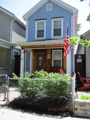 Kitchen with butcher block countertops with farmhouse sink, tile flooring, custom built oak table with blue coral granite top, custom built wood staircase, cherry cabinets. Downstairs bathroom with Italian marble walls, oak vanity and tile flooring, commercial bathtub/shower Washer and dryer area with Speed Queen washer and dryer set, hallway, storage basement off of laundry area Privacy fenced in backyard with back patio area with picnic table, gas grill and gas firepit Upstairs bathroom with Italian marble tile walls, tile flooring, and bathtub/shower, and upstairs hallway and landing. Back upstairs bedroom currently with full bed, desk, dresser, ceiling fan, and cedar lined closet Middle upstairs bedroom currently with twin bed, desk, dressers, ceiling fan and cedar lined closet Front upstairs bedroom currently with two twin beds, desk, dresser, ceiling fan and cedar lined closet This page last updated 07/29/2025