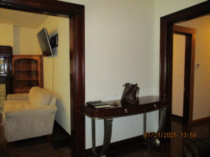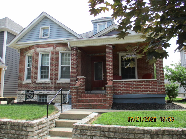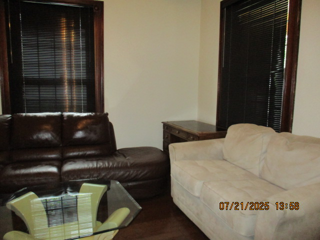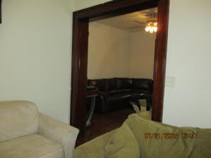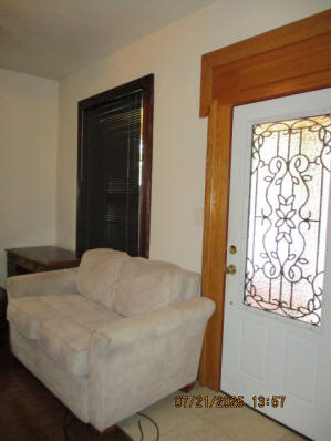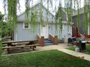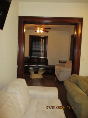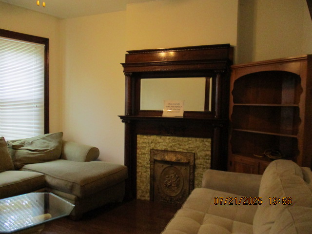 46 Frank Street This gorgeous brick home features: solid oak wood flooring downstairs in living areas and bedrooms, two downstairs bedrooms both with cedar lined closets, one upstairs bedroom with oak wainscoting, cedar lined closet and two other closets! Kitchen with hickory cabinets, oak wainscoting, slate tile flooring, dishwasher, microwave and platinum series commercial grade washer and dryer. Bathroom features Italian marble tile and vanity with two sinks. Central heat and air conditioning, steel entry doors. Front entrance door is trimmed in black walnut. This house also has a living room and a parlor with a beautiful fireplace with a tiger oak mantle, leather living room furniture, and wall mounted television. Privacy fence in backyard, picnic bench, gas grill and hammock. Best of all, you are a block and a half from campus and all the fine restaurants!! **As with all our properties, maintenance is included.** (Click on any of the pictures below to see an enlarged view)** Front views of house with front porch with oak ceiling and stone retaining wall Parlor with solid oak wood flooring, fireplace with tiger oak mantle, ceiling fan, sectional sofa, wall mounted television